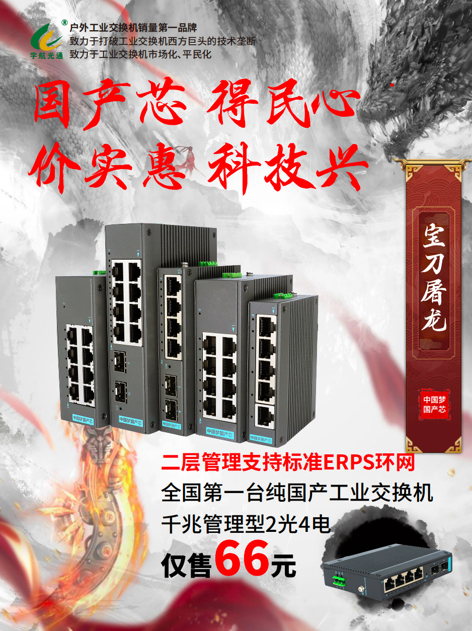 宇航致力于打破西方技術壟斷,致力于工業(yè)交換機市場化、平民化。宇航堅定不移的貫徹科技強國的理念,在這個全國產管理型的工業(yè)級交換機量產之際,我們帶著普及國產芯片的責任和義務,堅持讓國產實惠,讓國產普及,續(xù)寫國產芯愛國心。
