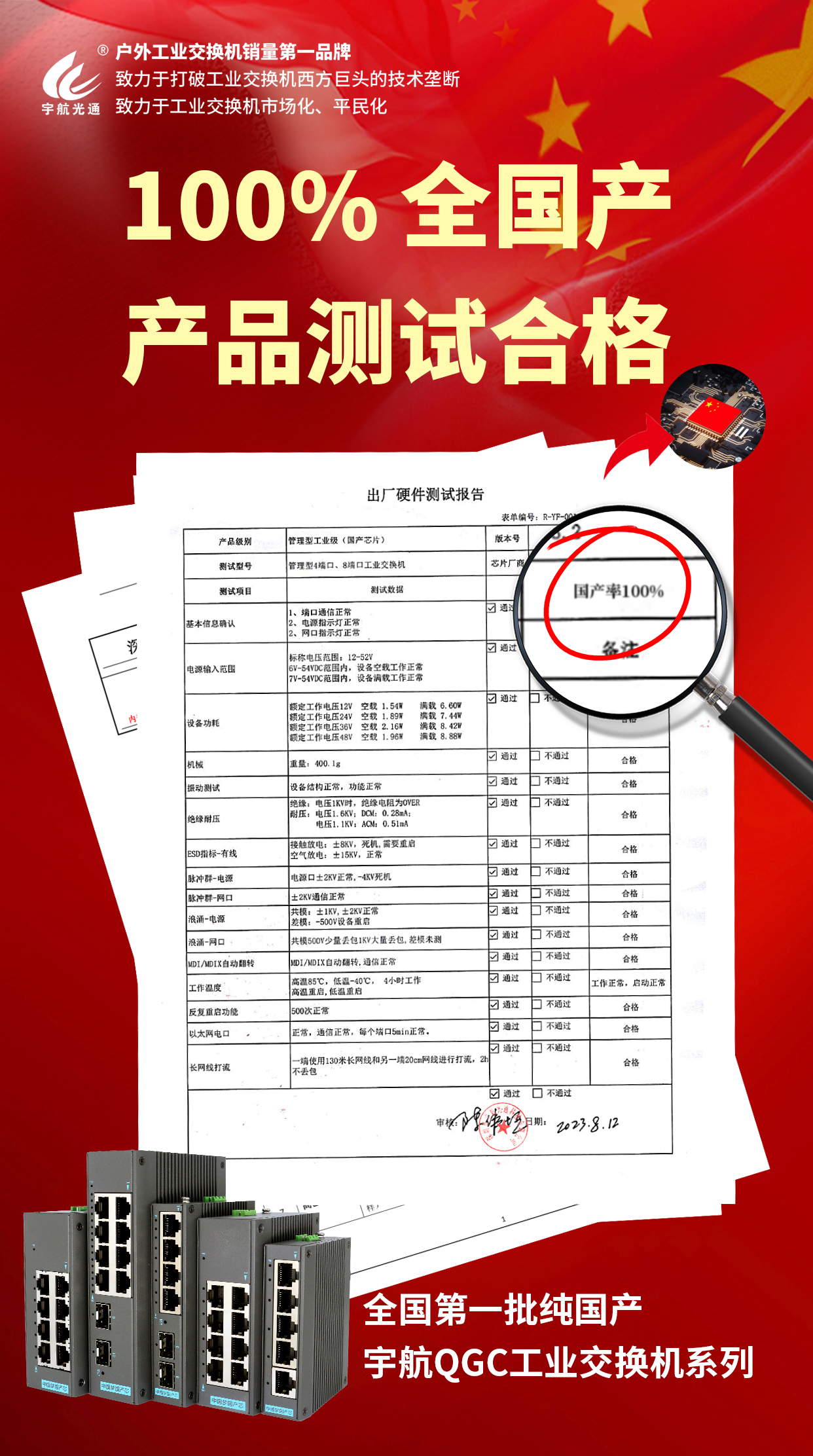 宇航工業(yè)交換機(jī)積極擁抱自主可控國策,推出國產(chǎn)芯片系列產(chǎn)品。宇航QGC工業(yè)交換機(jī)系列選用景略半導(dǎo)體和裕太微電子的國產(chǎn)芯片,助力自主科技產(chǎn)業(yè)發(fā)展。通過自主可控的實(shí)現(xiàn),不僅提升了設(shè)備的可靠性和安全性,也為中國芯的發(fā)展添磚加瓦。