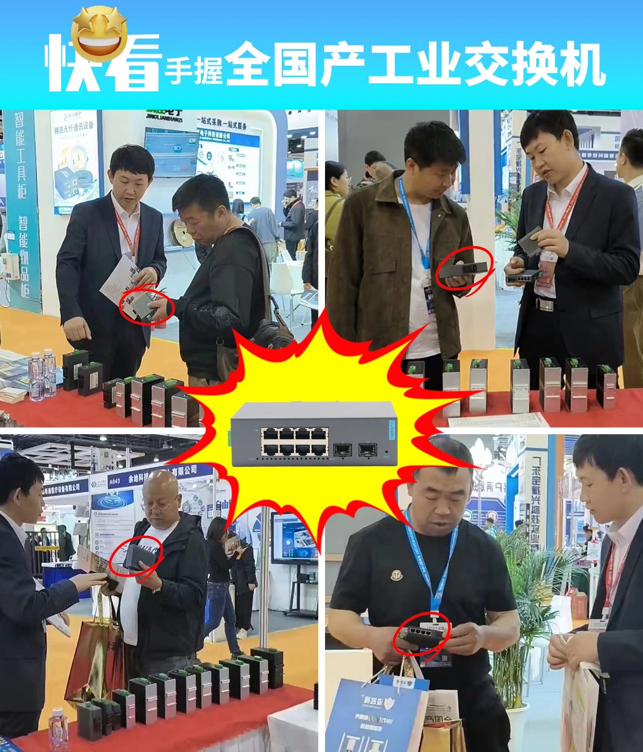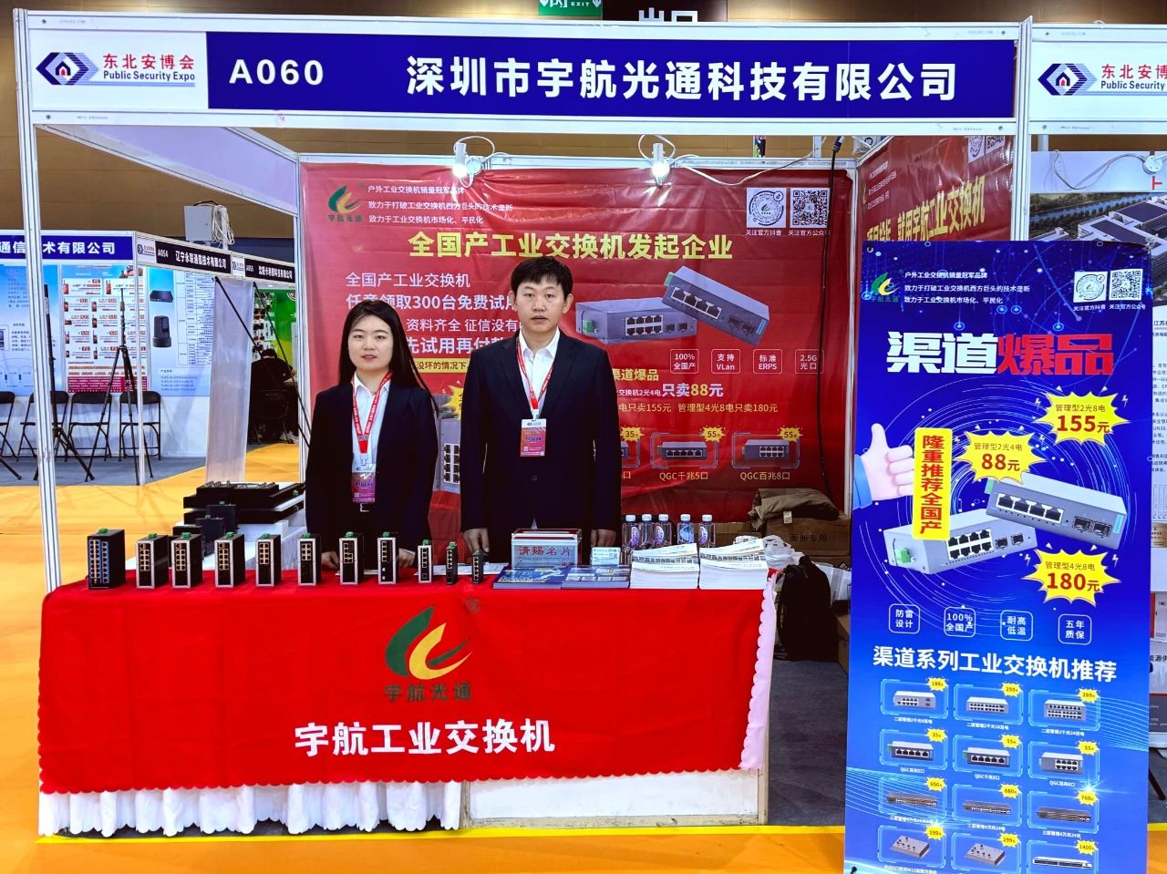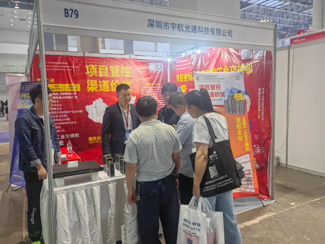 宇航,作為全國產工業交換機的發起單位,在展會現場,我們不斷的向大家推廣全國產工業交換機,介紹全國產工業交換機的卓越性能以及“免費試用”的用戶體驗模式,在展會現場引起轟動,成為展會焦點!