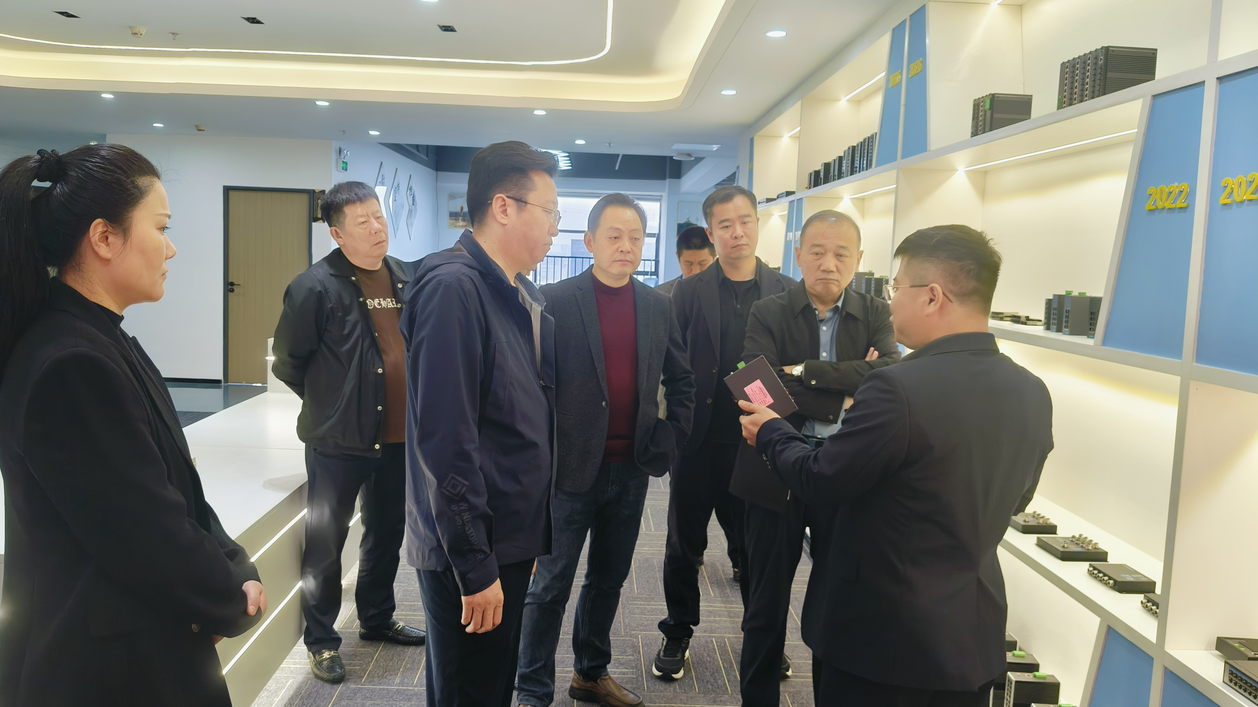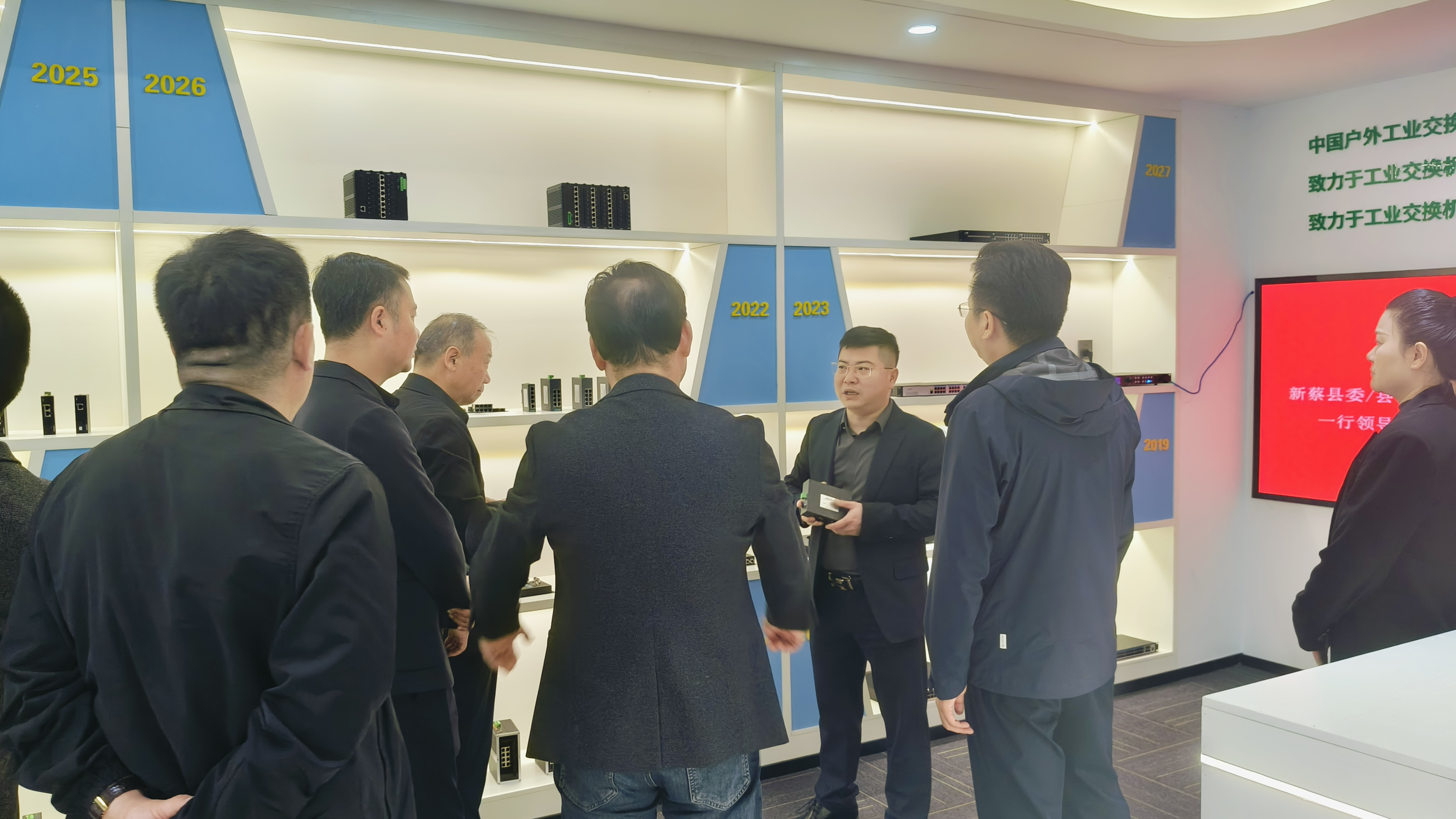 接著向領導們介紹了宇航工業交換機的歷史發展軌跡。從成立初期的小規模研發團隊,到如今擁有多項核心技術和自主知識產權的行業領軍企業,宇航的發展歷程充滿了挑戰和機遇。劉總還展示了宇航的最新產品和技術成果,包括高帶寬、低延遲的工業以太網交換機、適應惡劣環境的工業級交換機以及智能化管理平臺等,并詳細介紹了這些產品的技術特點、應用場景和市場競爭力,通過展示宇航的最新產品和技術成果,領導們對宇航在行業內的領先地位和技術實力有了更深入的了解。