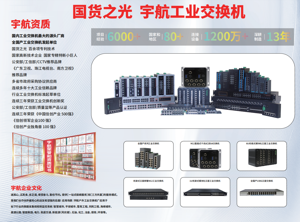 宇航,致力于工業交換機先進技術的研發,致力于工業交換機市場化、平民化!期待與您共赴美好未來!