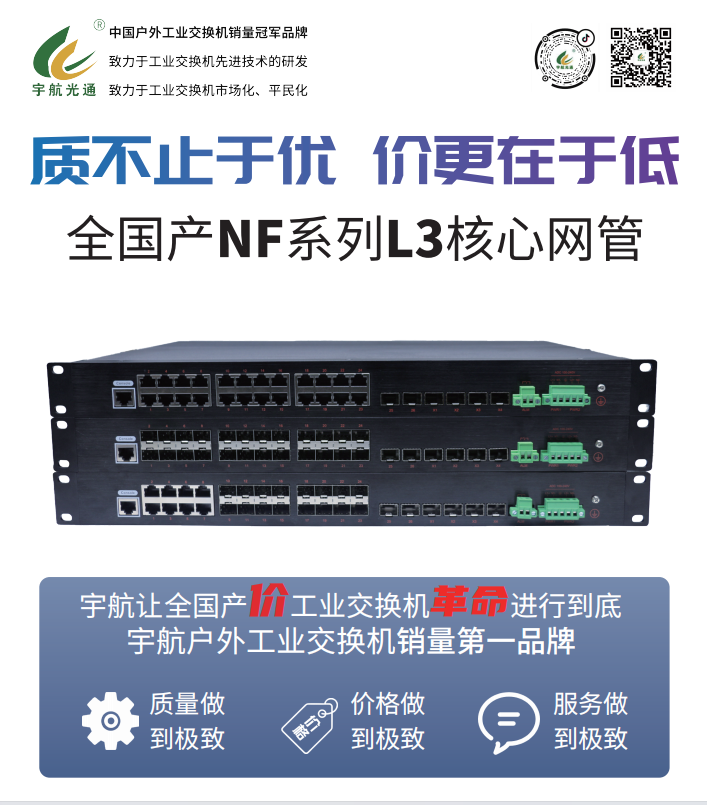 宇航全國產工業交換機系列已實現整體升級,邁上全新臺階,本次重點展示的全國產萬兆核心與二層交換機,徹底證明了國產方案已能無縫替代美系、臺系產品,且不懼性能比較,全國產工業交換機已告別“可用”,進入“好用””的全新階段。我們提供多樣化的規格選擇,以滿足您不同場景的嚴苛需求。