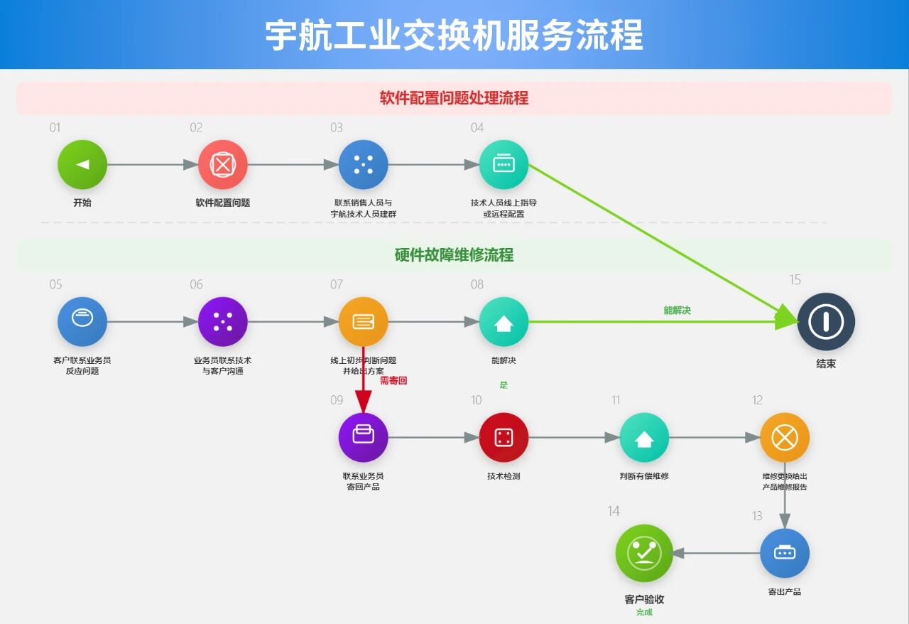 行業領先的3-5年超長質保周期,7×24小時專業技術團隊快速響應,售后服務有保障。更有免費增值服務:宇航自研AI智能網管平臺、專業網絡拓撲設計、現場技術勘測與方案驗證,從部署到運維,讓您的工業網絡全程省心!