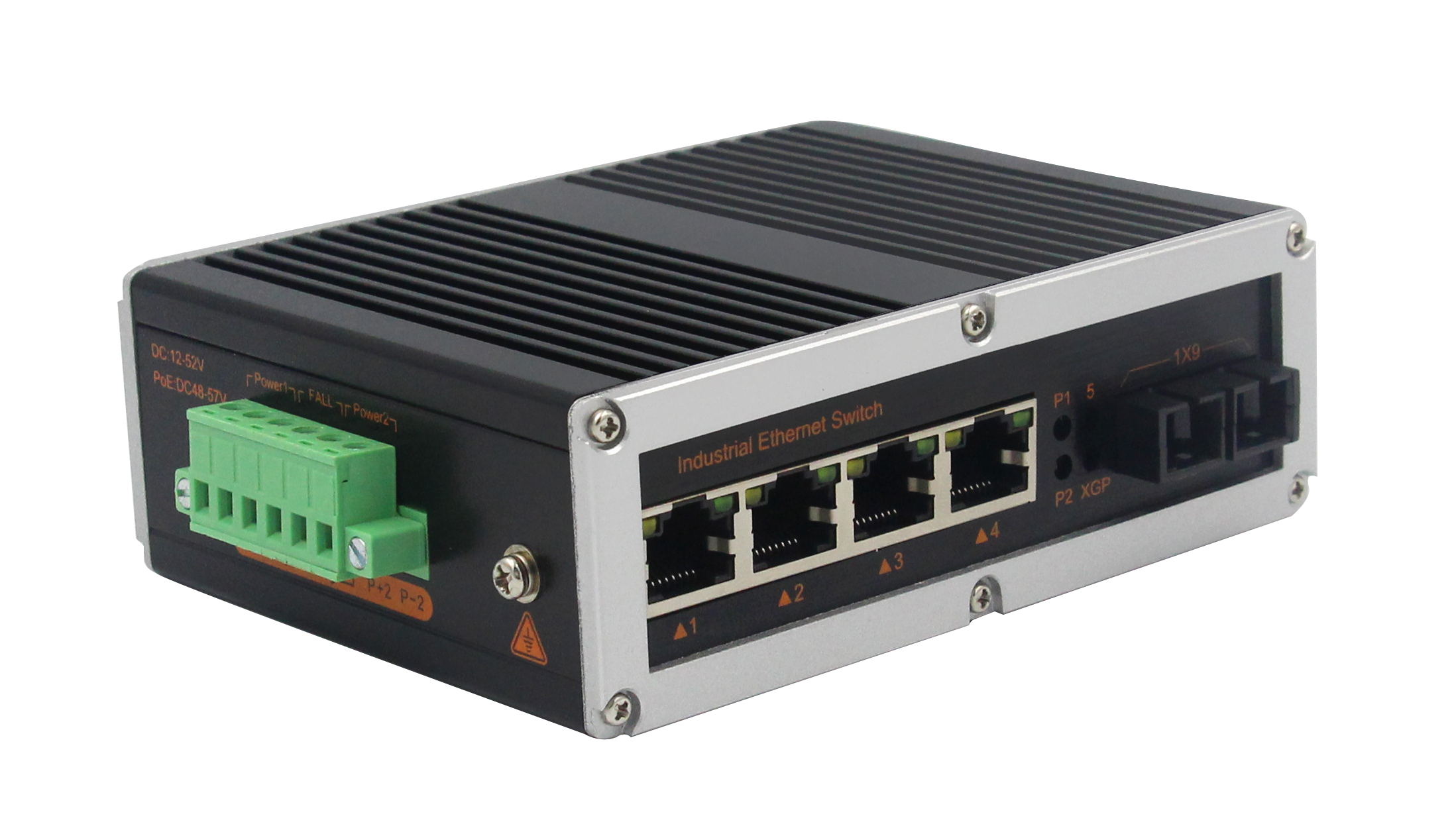 百兆1光4電工業級以太網交換機產品符合 FCC、CE、ROHS 標準。此系列交換機具有 -40℃~ 85℃的工作溫度, 具有超強的堅固度能適應各種嚴苛環境,也可以非常方便的安置在空間緊湊的控制箱中。導軌式的安裝特性、寬溫操作及擁有 IP40 防護等級的外殼及 LED 指示燈,使之成為一個即插即用的工業級設備,為用戶的以太網設備聯網提供可靠、便捷的解決方案。