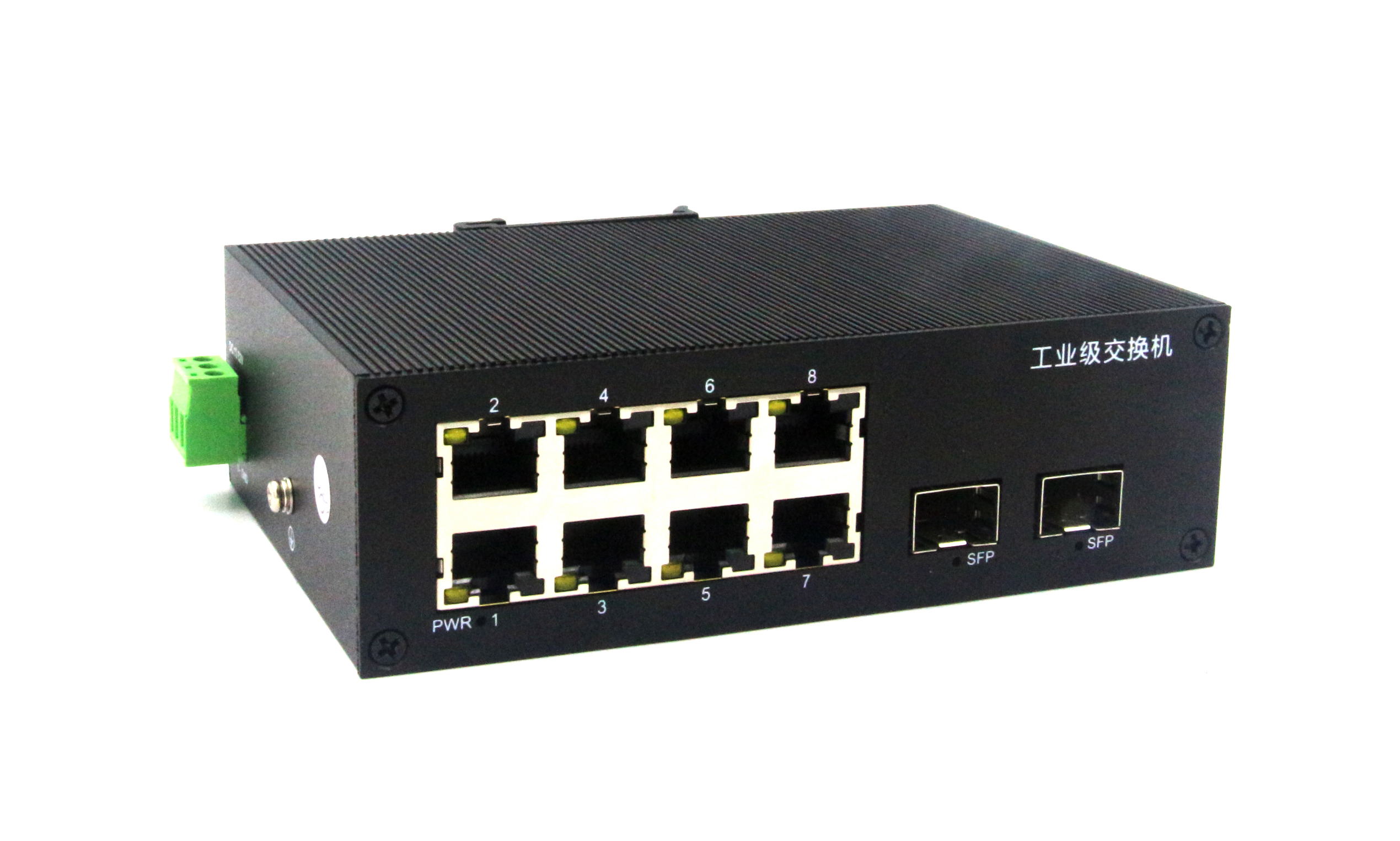 2個千兆光+8個千兆電、SFP接口(不含光模塊)、導軌式、DC12-48V供電-寬溫(-30℃-75℃)