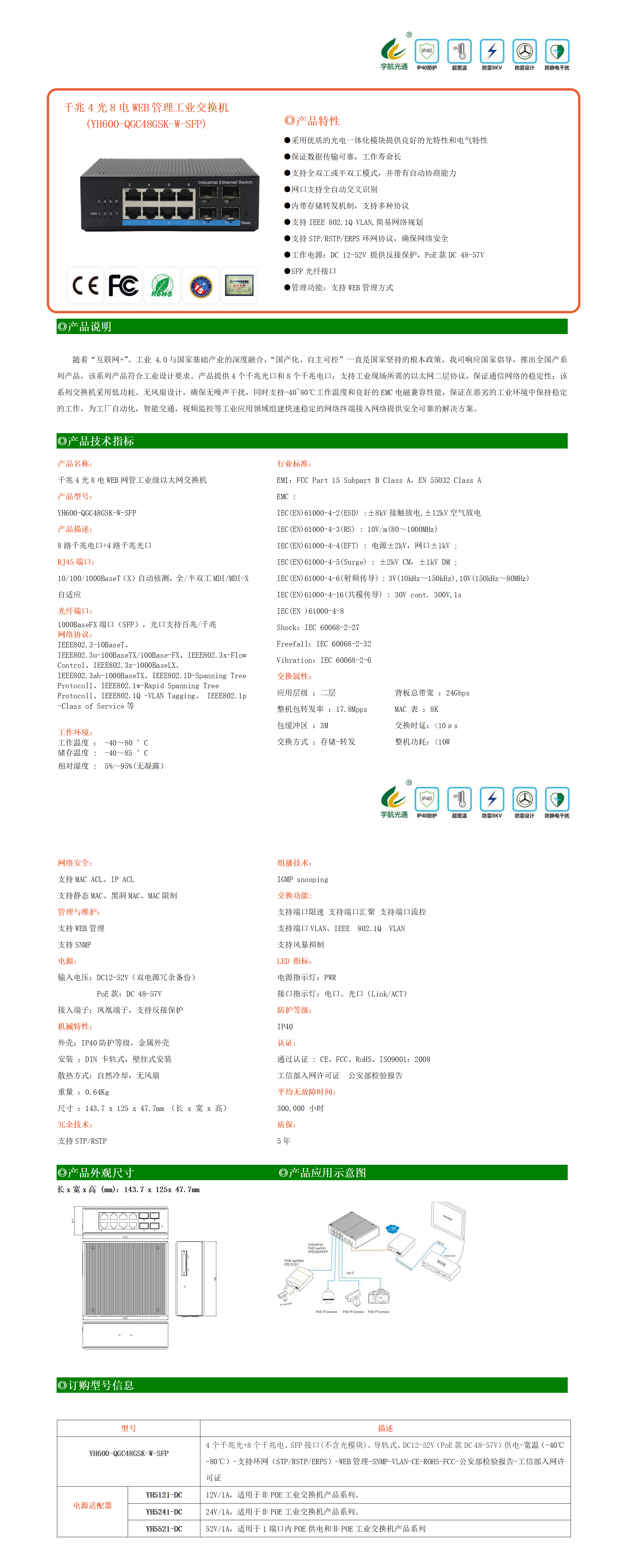 隨著“互聯網+”、工業 4.0與國家基礎產業的深度融合,“國產化、自主可控”一直是國家堅持的根本政策。我司響應國家倡導,推出全國產系列產品,該系列產品符合工業設計要求。產品提供4個千兆光口和8個千兆電口;支持工業現場所需的以太網二層協議,保證通信網絡的穩定性;該系列交換機采用低功耗、無風扇設計,確保無噪聲干擾,同時支持-40~80℃工作溫度和良好的EMC電磁兼容性能,保證在惡劣的工業環境中保持穩定的工作,為工廠自動化,智能交通,視頻監控等工業應用領域組建快速穩定的網絡終端接入網絡提供安全可靠的解決方案。