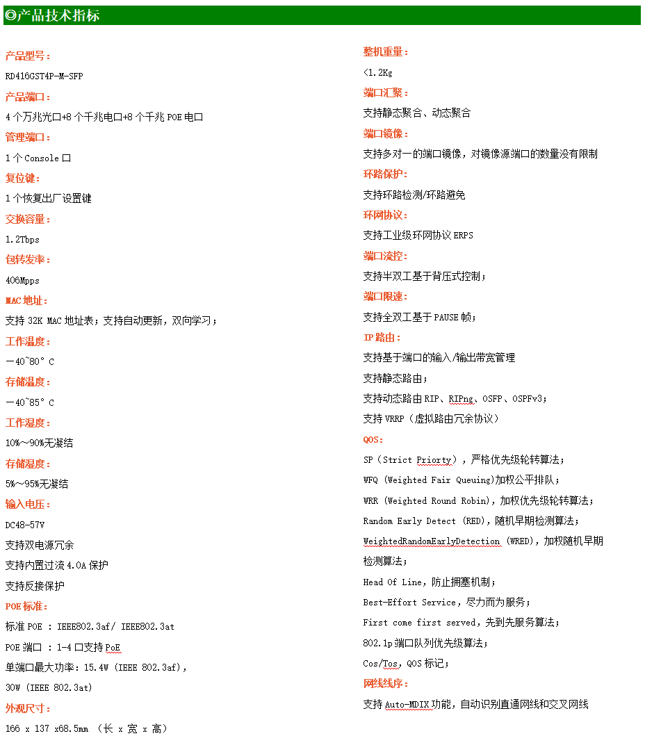 ●網絡冗余:支持STP/RSTP/MSTP,支持ERPS(自愈時間<20ms)