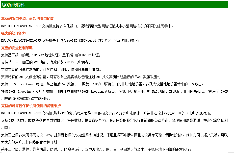 ●網絡冗余:支持STP/RSTP/MSTP,支持ERPS(自愈時間<20ms)