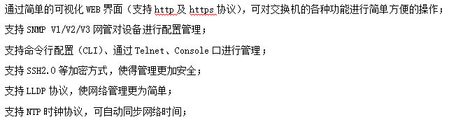 ●管理功能:支持WEB、CLI、SNMP等多種管理方式